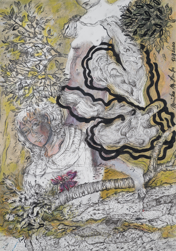 „ver-zeichnet I“, nach Lucas Cranach, Mischtechnik auf Papier, 43 x 30,5, 2020
