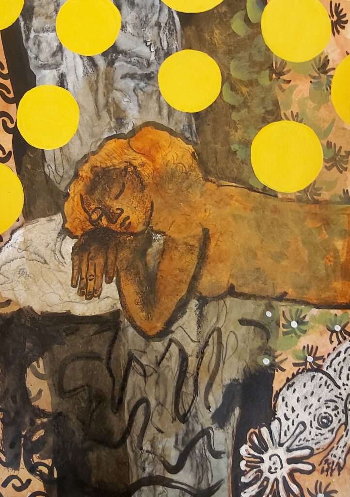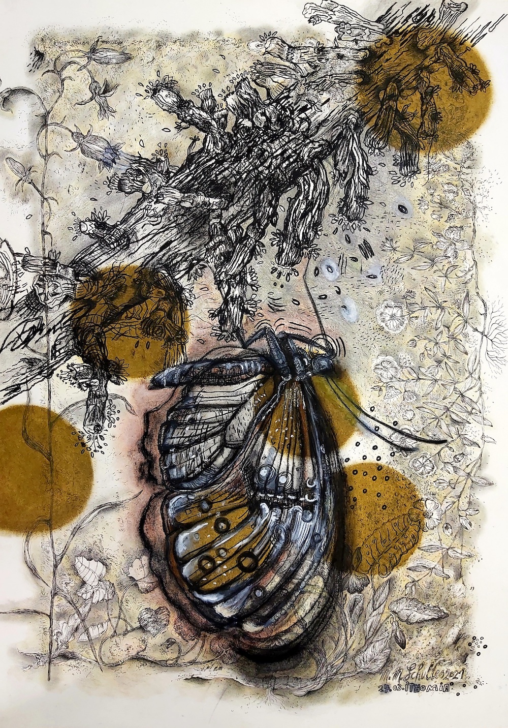 "Symbiose mit Sternmull, Mischtechnik auf Papier, 21 x 29,5, 2022/23