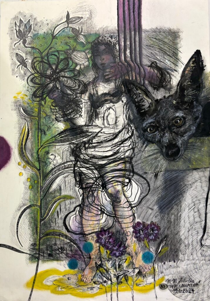 962 „UNVERBLÜMT 03, Mischtechnik auf Papier, 100 x 70 cm, 2024