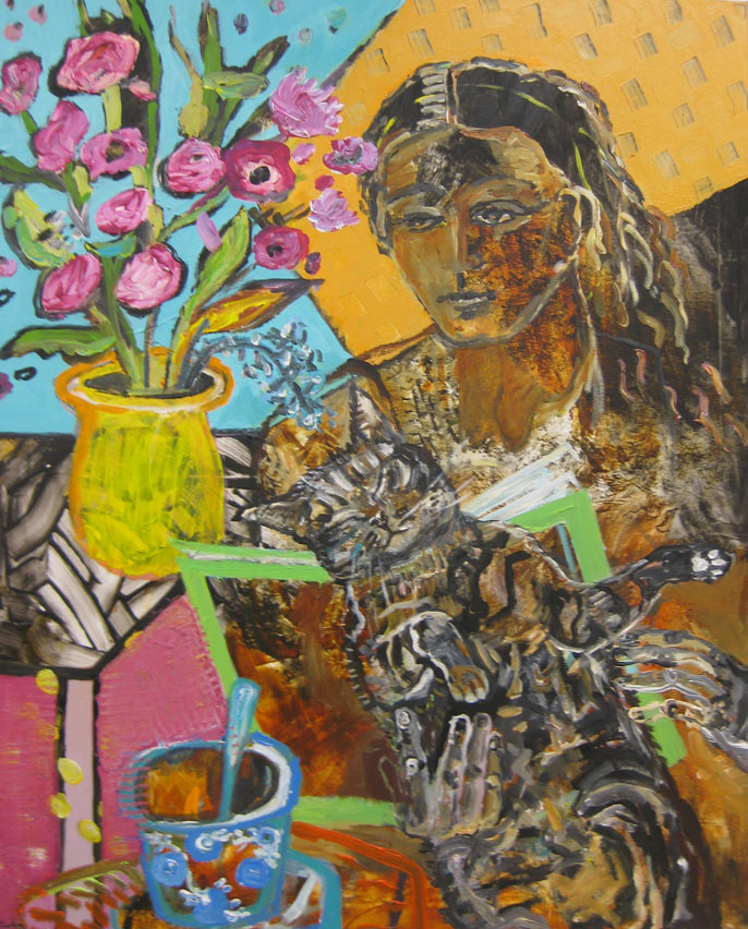 Lesende mit Katze, Acryl auf Leinwand, 100 x 150, 2016