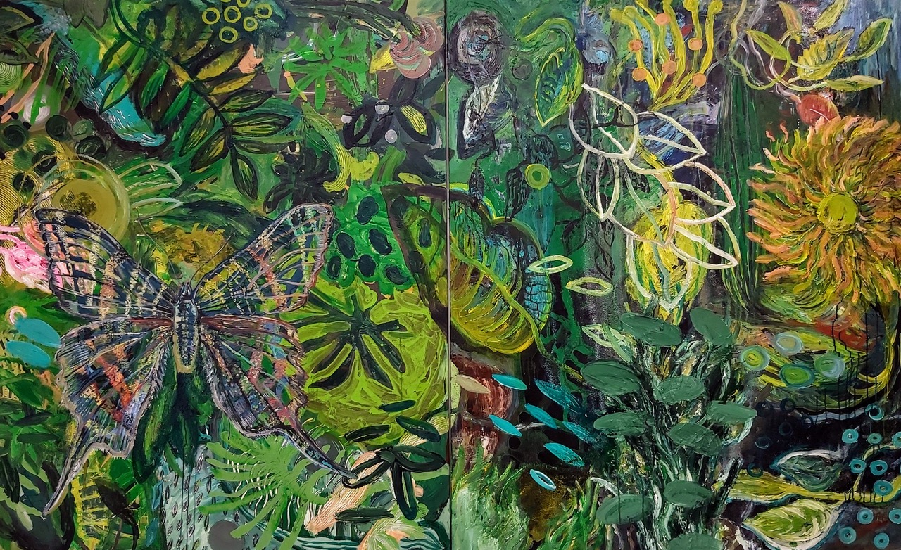 „Urania sloanus“ Acryl auf Leinwand, Diptychon, 160 x 260 cm, 2019